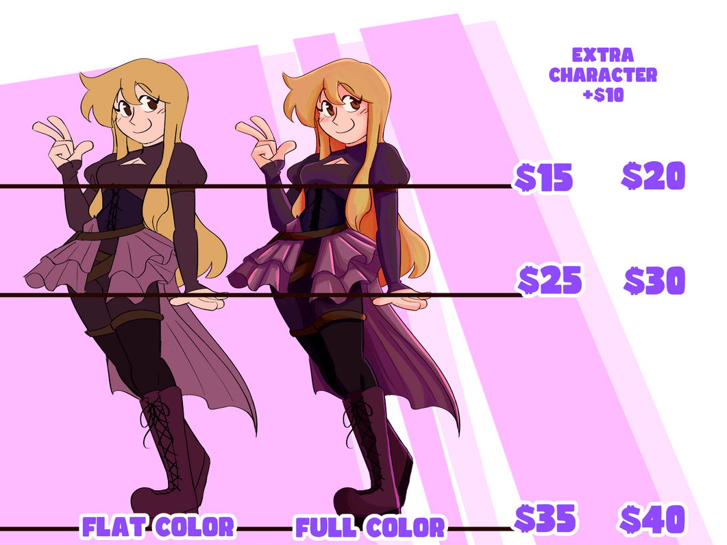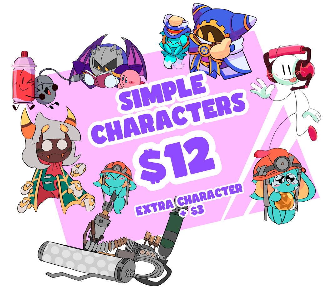 Simple shading is an option that you can ask for free!(Simple characters only extend to sticks, objects and Kirby characters, as well as ocs from these series or any other that are simple, furry and anthro characters unless extremely chibi don't go here).